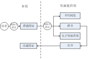 读者凭本人有效证件(一卡通)到图书馆馆际互借员处借出通用借书证,无需抵押本人证件、无需缴纳押金;再凭本人有效证件和通用借书证到图书馆各阅览室借书或查阅资源。