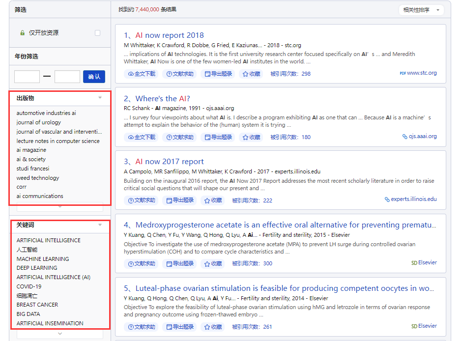 基于对“检索内容”的深度挖掘分析,提供出版物和关键词关联推荐,点击可直接跳转出版物和关键词相关文献,扩大检索范围避免漏检,拓展思路助力课题创新。