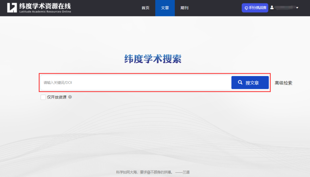 1、图书馆主页——更多试用数据库——纬度学术资源在线
