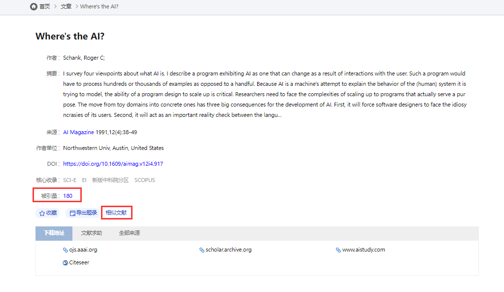 系统内建引用关系,利用文章详情页提供的施引文献和相似文献,帮助读者由点及面了解整个课题的发展趋势、研究方向等。