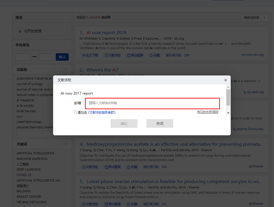 如文章不能直接下载,点击“文献求助”按钮,输入自己的邮箱,10分钟左右就可以在邮箱收到这篇文章的下载链接,点击链接直接下载获取。