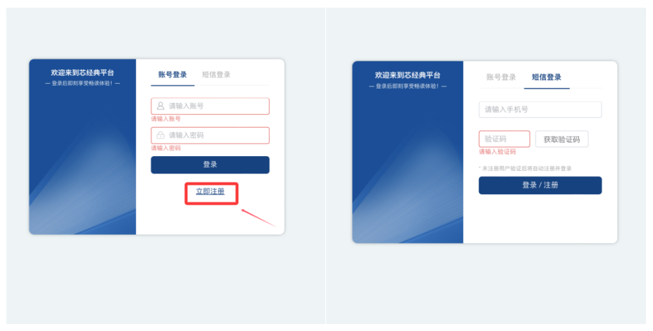 第二步:点击【立即注册】-填写【手机号】获取验证码登录/注册。