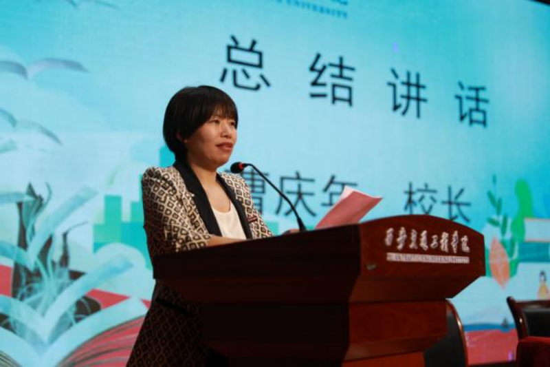 校长曹庆年教授作了题目为“读书励志,以学铸魂,成就自我”的总结讲话。他指出,读书,是一个人成长、进步和发展的阶梯,是一个国家、一个民族文化传承、凝聚力量、创造创新的重要源泉,是提升国家软实力的重要途径,是一个大学学风建设的重要内容和标志。本次活动就是为了弘扬勤学精神、交流读书经验,引导鼓励师生树立正确的学习观、读书观,营造爱读书、读好书、善读书的浓厚氛围,促进我校学风建设再上新台阶。为此,曹庆年教授给同学们提出四点希望:一是希望同学们以书为舟,扬帆远航,珍惜时间,以时不我待的紧迫感多读书,读好书,为自己的高远大志奠定好基础;二是提醒同学们优选精读,铸魂成才,多读名家名人的名篇名著,多读专业书籍,启迪智慧,巩固扎实的专业基础;三是希望同学们勤读善思,成就终生,学以致用,立志成才,把读书获取的知识,通过不断的思考和实践融会贯通,把知识变成智慧,让智慧转化为自己的能力,从而保障实现自己的人生目标;四是希望同学们做阅读火种的传播者,人人参与阅读推广,埋下全民阅读、终生阅读的种子。