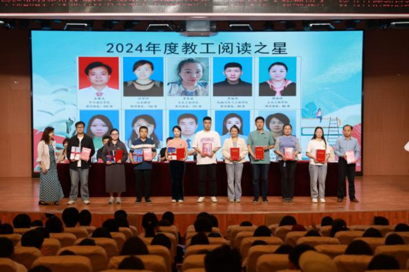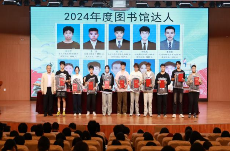 副校长王勇宣读了《西安交通工程学院关于表彰2024年度优秀读者的决定》,并由与会领导给2024年学生“阅读之星”、学生“专业图书阅读之星”、“图书馆达人”、“教工阅读之星”“2024年大学生信息素养大赛陕西赛区省赛”、“阅读推广个人及单位”等颁发了证书、奖品和奖牌。会上,中兴通信学院大数据管理与应用2201班席佳昕同学代表学生获奖者发言,分享自己获得大学生信息素养大赛的心理路程及日常读书心得;接着,阅读推广先进个人代表、中兴通信学院辅导员姚望交流了自己组织、促进阅读推广工作的经验和做法。
