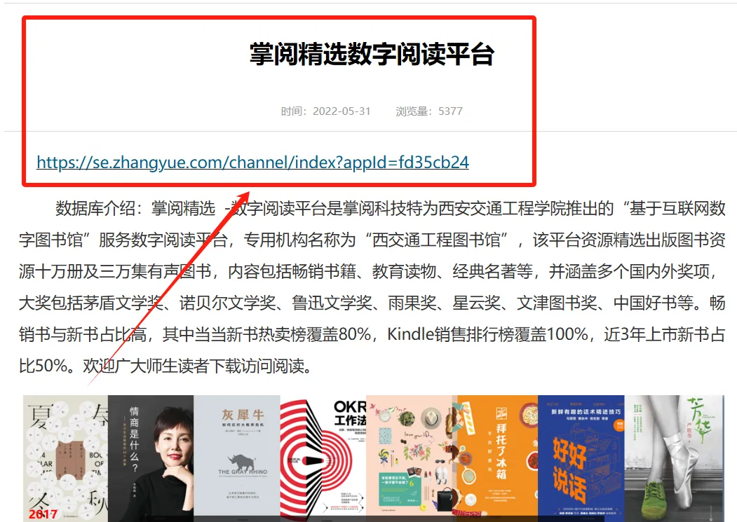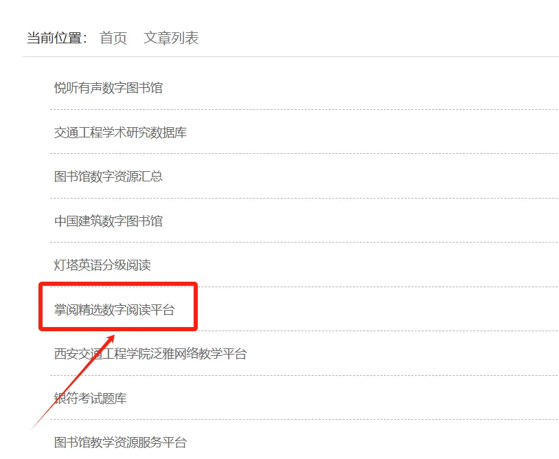 访问“西安交通工程学院”官网 → 进入“图书资料”模块 →进入“馆藏电子资源”模块,点击进入“掌阅精选数字阅读平台”阅读精彩内容;