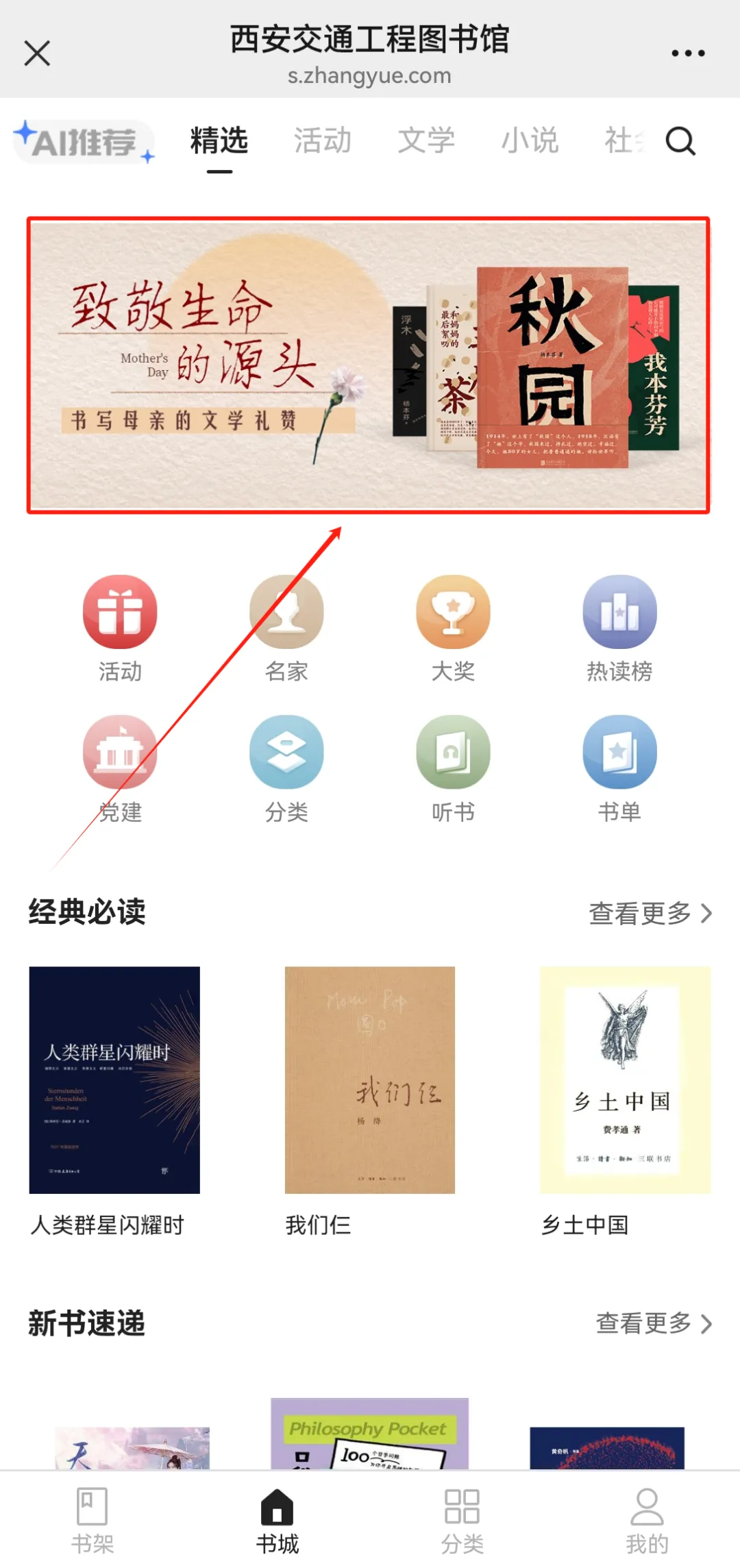 关注“西安交通工程学院图书馆”微信图公众号,在对话框点击“掌阅精选”子栏目;