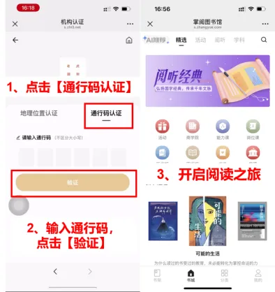 若在校外注册,请点击【通行码认证】,输入通行码【arr4k5】,点击【验证】,即可开启免费在线阅读。(如下图二所示)