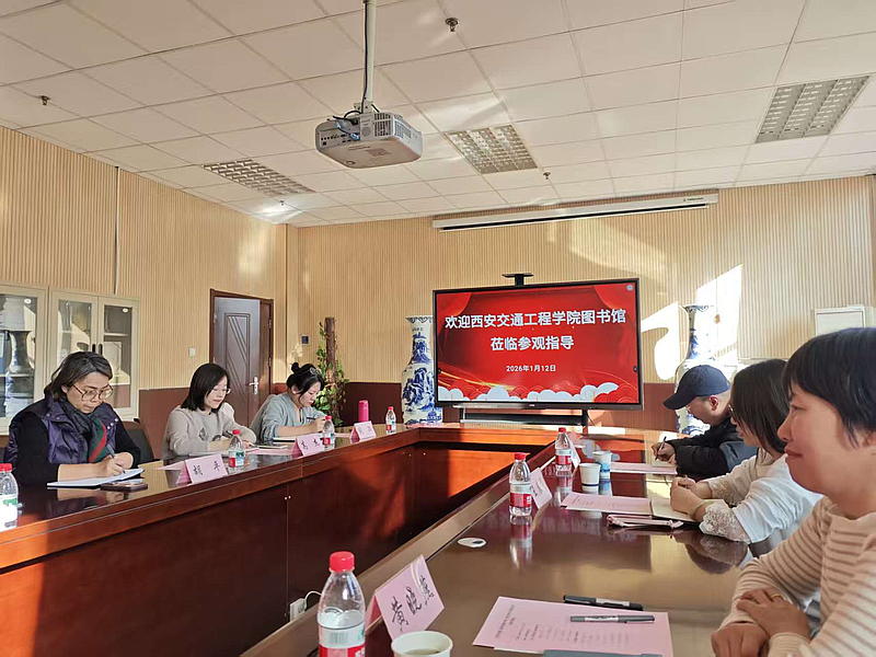 为持续深化图书馆内涵建设,全面提升智慧化服务能级与文化育人实效,切实助力学校学科建设与科研创新发展,2026年1月12日,西安交通工程学院图书馆馆长黄晓燕率各业务部门负责人,赴西安财经大学图书馆开展实地交流与深度研讨。西安财经大学图书馆总支书记孙金峰、副馆长胡平、副馆长井水及相关部门负责人热情接待,双方围绕图书馆高质量发展核心议题展开全方位互动。