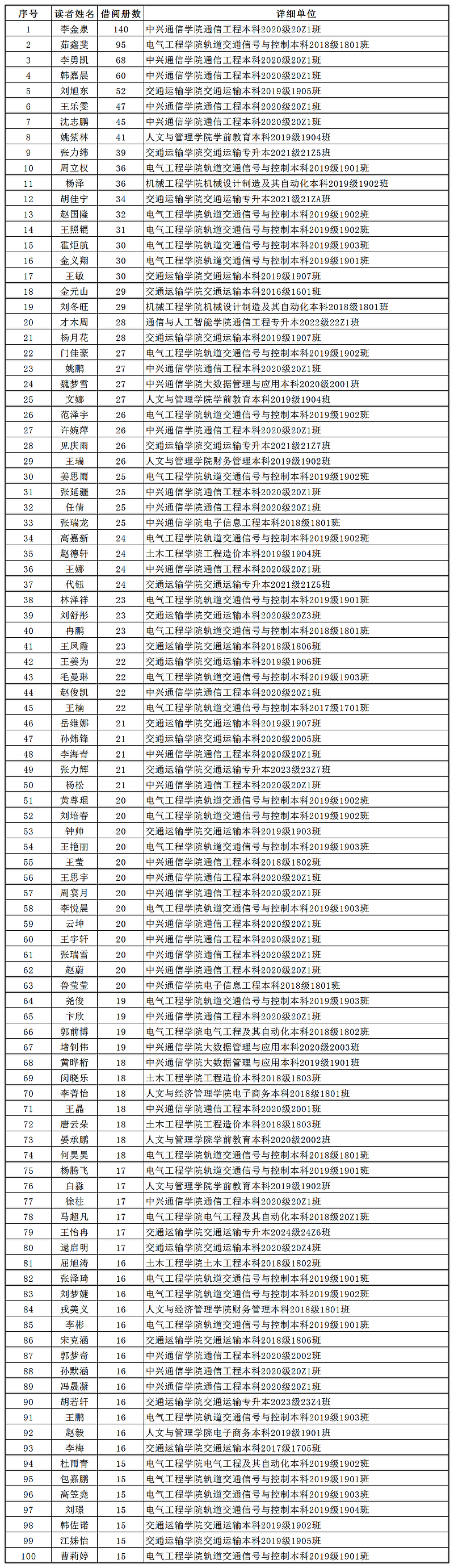 2020年本科读者借阅排行榜