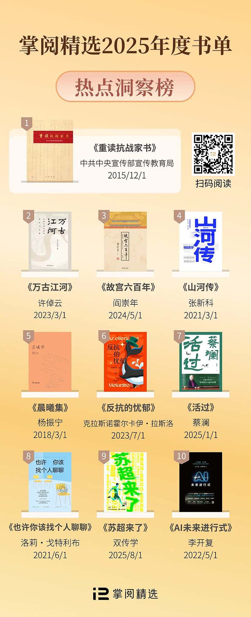 掌阅精选2025年度书单,就从这些阅读痕迹里来。它不只是一份榜单,更像一份年度阅读地图:经典给你底气,新书给你方法,有声书给你陪伴,热点书给你视角,解读书给你导航。翻开它,像把这一年重新走一遍——踏实,也温暖。
